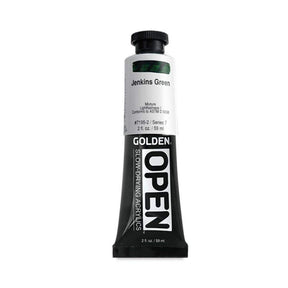 OPEN Slow Drying Acrylics - forblir våt mye lenger enn andre akrylmalinger, og hindrer at det skapes hinne på paletten under lengre arbeidsøkter. Arbeidstiden vil variere etter hvor tykt lag du legger. Tynne lag tørker relativt raskt, og tillater at ytterligere lag påføres eller blandes. Tykkere lag kan bearbeides i flere timer. Strøk på ca. 1,5 mm tykkelse vil tørke ekstremt sakte.