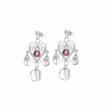 1.98900 krEnhetsprisØredobber Nostalgi Hjerte med Lauv - Lyserosa Krystall / Sølv