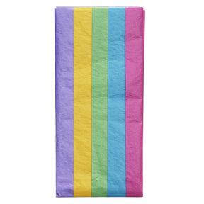Tissue Paper – sett med flortynt silkepapir på 50×70 cm. Pakken inneholder 5 ark i fargene rosa, blå, grønn, gul og lilla. Silkepapir egner seg alltid glimrende til dekorasjon, gaveinnpakning og andre hobbysysler. Arkene er gjennomfarget og av høy kvalitet. Vekt 18 g. Syrefrie.