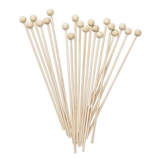 20-pakning klassiske kjærligheter på pinne av lyst tre. Kjærlighetene på pinne er veldig lange, hele 16 cm, og har en trekule ytterst, slik at de kan bære masse godsaker! Slikkepinner, lollipops, cakepops, rock candy, Cookie pops, sjokoladedyppede fudgekuler – skal det være stort, søtt og på pinne har du kommet helt riktig for å lage egne kjærligheter på pinne. Pakken inneholder 20 stk. næringsmiddelgodkjente pinner av tre.