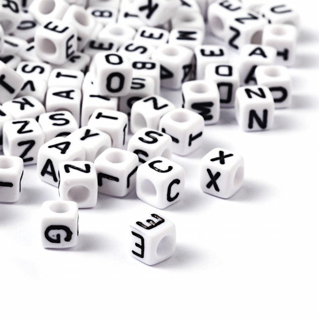 Bokstavperler Kube 6x6mm, 30g - Svart på Hvit