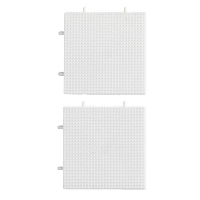 Perleplater mini, av hvit plast. Til Hama rørperler (mini Ø 2,5 mm). Pakke med 2 stk.Kvadrat (byggbare), 14x14 cm.