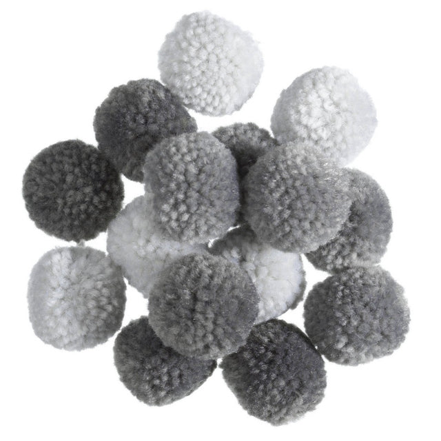 Pomponger, en morsom måte å pynte hva som helst med: Girlandere, figurer, anheng – og de er dessuten morsomme til alle mulige hobbyaktivteter. Pakken inneholder 15 baller à '30 mm