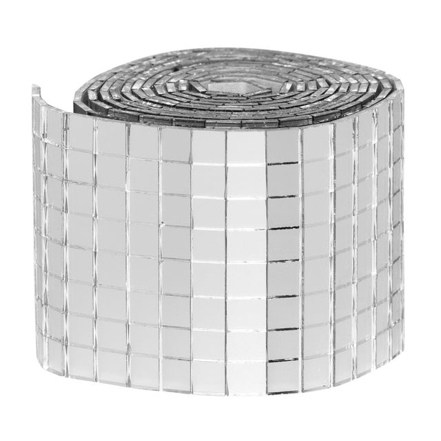 Speilmosaikk på rull, en morsom og effektfull måte å dekorere alt mulig på! Den meterlange rullen inneholder hele 1600 små selvklebende ruter på 5×5 mm med speileffekt, men som fremfor alt fanger lys veldig bra, gnistrer flott og lager nydelige lysspill. Diskokule på rull, rett og slett!