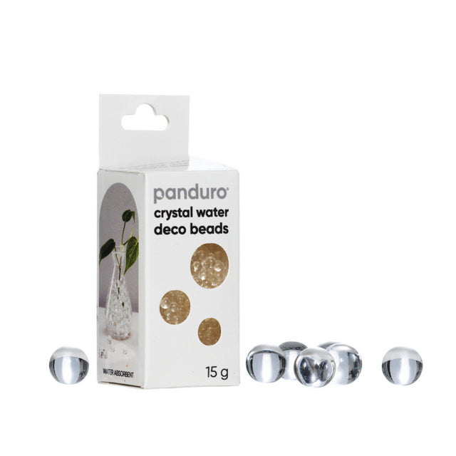 Water Deco Beads er små vannabsorberende perler / vannperler / vannkuler som blir flotte dekorasjoner i skåler og vaser med eller uten blomster. Hvordan fungerer det? Enkelt – doser de små perlene forsiktig i karet. Pakken inneholder bare 15 gram, men tro oss når vi sier at det blir ganske mange store gelékuler av det hele. Tilsett deretter vann i karet og se hvordan kulene begynner å svulme. Trenger du litt mer, strør du kulene forsiktig i etappevis til du har en god blanding av vann og vannperler i skålen eller blomsterarrangementet. Pakken blir ca. 1 liter ferdige vannperler.