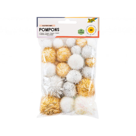 Folia Pomponger 30stk - Glitter Jul Hvit, sølv, gull