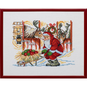 Korsstingsbroderi, 25x20cm - Julenisse med Epler