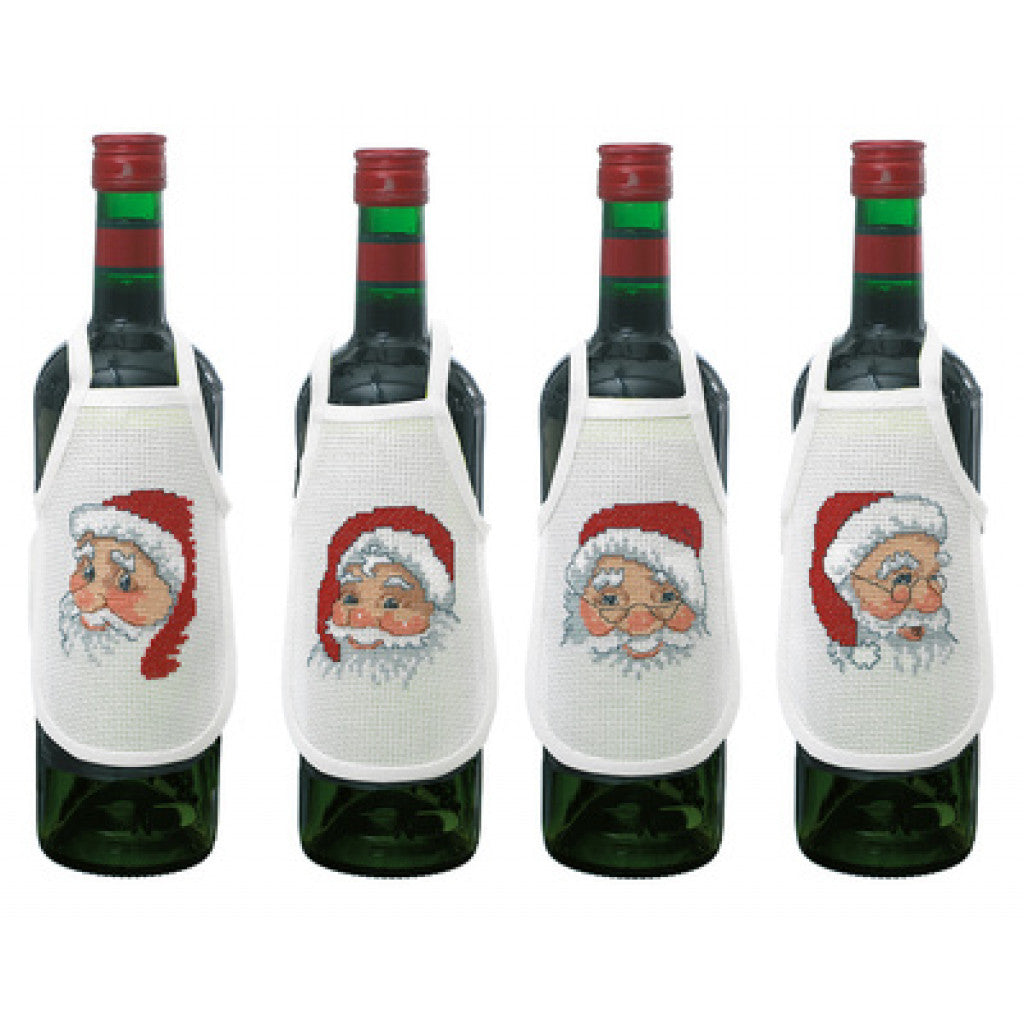 Korsstingsbroderi Flaskeforklede - 4 Nissehoder, 10x15cm