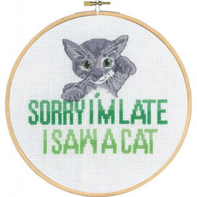 Korsstingsbroderi med Ramme - Sorry I´m late, 20cm, 5,4tr/cm