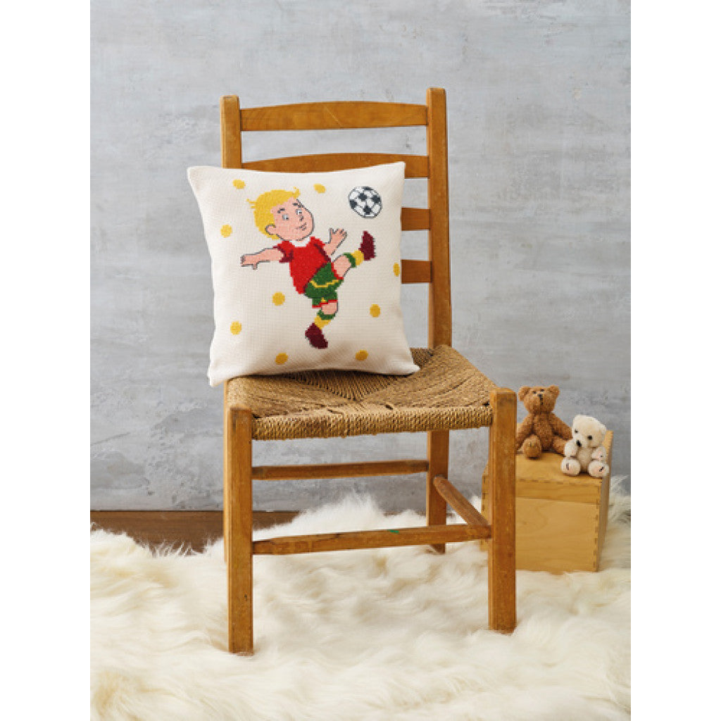 Korsstingsbroderi Pute - Fotball, 30x30cm