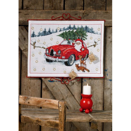 93300 krEnhetsprisProduktet er ikke tilgjengligKorsstingsbroderi - Julenisse i bil, 58x44cm