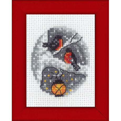 Korsstingsbroderi - Fugler i Tre, 9x13cm