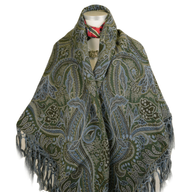Wienersjal Frynset 140 x 140cm - Blå/Grønn 011