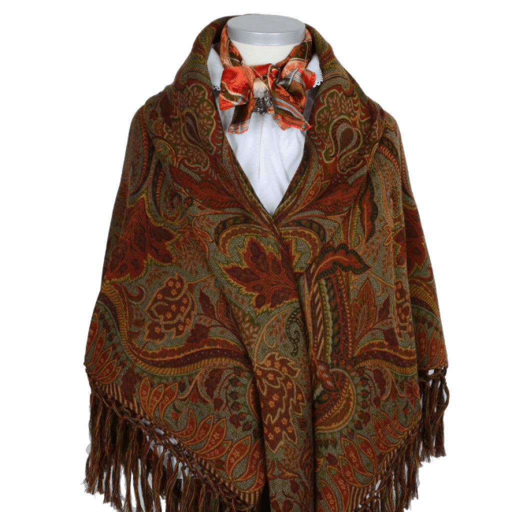 Wienersjal Frynset 140 x 140cm - Oransje/Grønn 019
