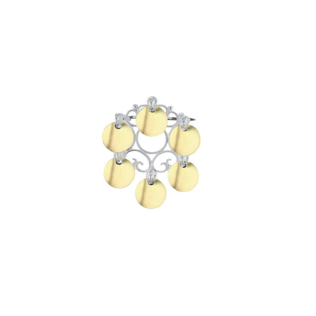Tradisjonell liten barnesølje i sølv med forgylte lauv, utformet etter etablerte tradisjoner for bunadssølv. Søljen er tilpasset barnebunad og inngår i bunadssølvet fra Agder.