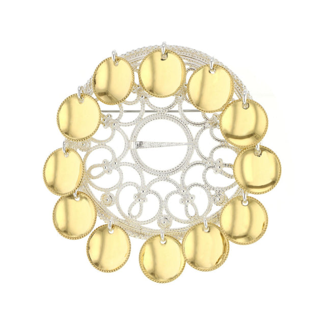 Tradisjonell stor rosesølje i sølv med forgylte lauv, utformet etter etablerte tradisjoner for bunadssølv. Søljen har 18 mm lauv og et markert midtparti, og inngår i bunadssølvet fra Vest-Agder.