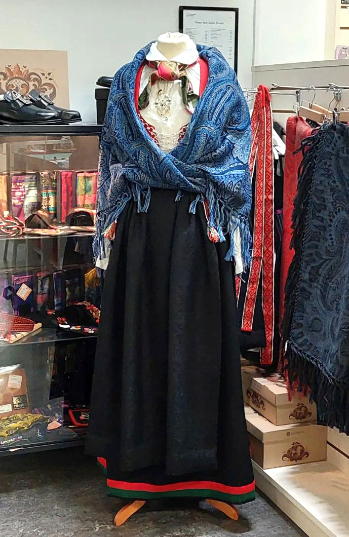 Sjalet blir brukt som tilbehør til bunad, og måler 140 x 140cm.