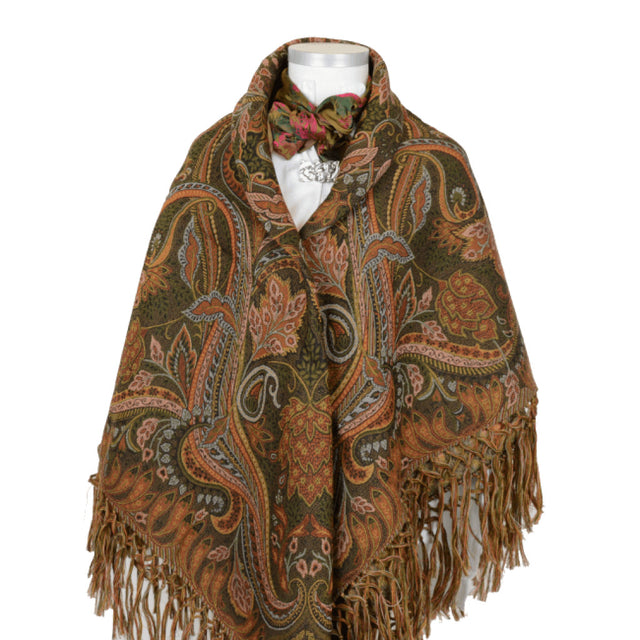 Wienersjal Frynset 140 x 140cm - Oliven/Oransje 020