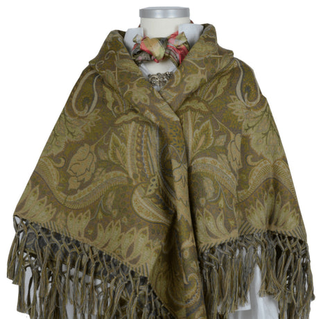 4.99800 krEnhetsprisWienersjal Frynset 140 x 140cm - Oliven/Oransje 020