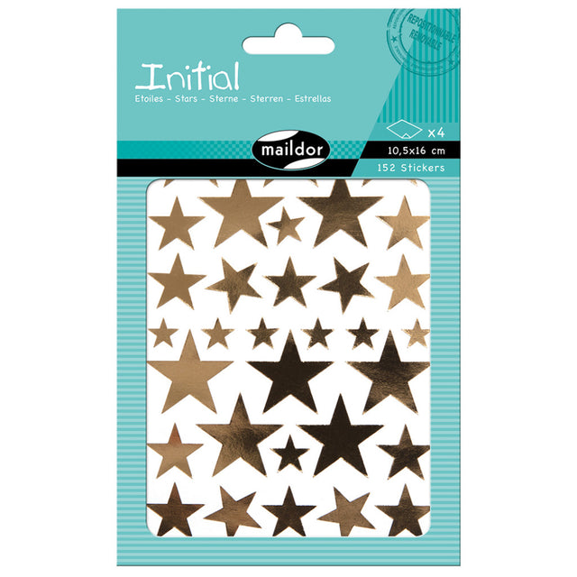 Initial Klistremerker - 4ark 2x2 farge - Stjerner gull/sølv