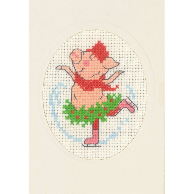 Korsstingbroderi Julekort, 9x13cm - Grise-Ballerina