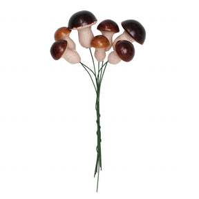 Søte sopper på ståltråd – 7 steinsopper i ulike størrelser blir festlige små dekorasjoner til mange typer julehobby og juledekorasjoner. Fine i miniatyrlandskaper og enkle å feste i julekranser og alt annet som kan trenge noen søte sopper! Soppene er 25–35 mm høye, 20–30 mm i diameter og laget av isopor. Den fargerike hatten på soppen er malt og deretter lakkert med hard, blank lakk. Nederst er soppen festet i en 10–12 cm lang ståltråd som er myk og enkel å bøye.