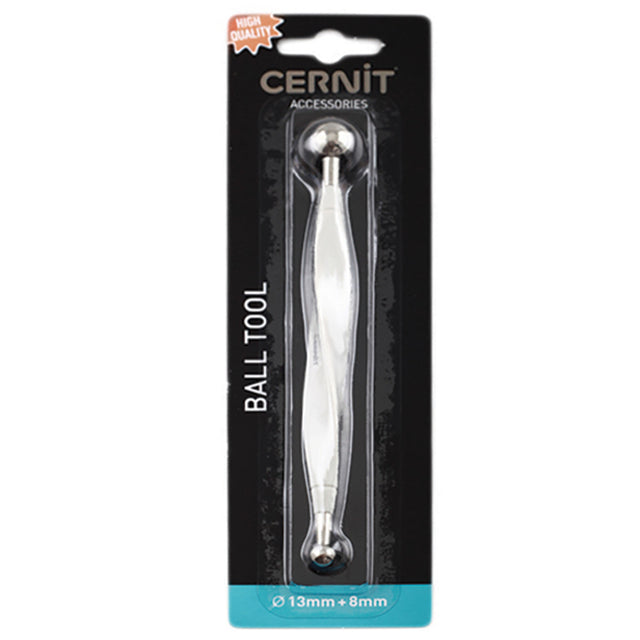 Cernit Ball Tool er et praktisk verktøy for arbeid med polymerleire og andre modelleringsmasser. Verktøyet har en metallkule i hver ende, henholdsvis 8 mm og 13 mm i diameter, som gir mange bruksområder i forming og bearbeiding av leire.