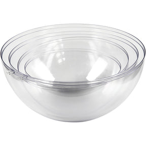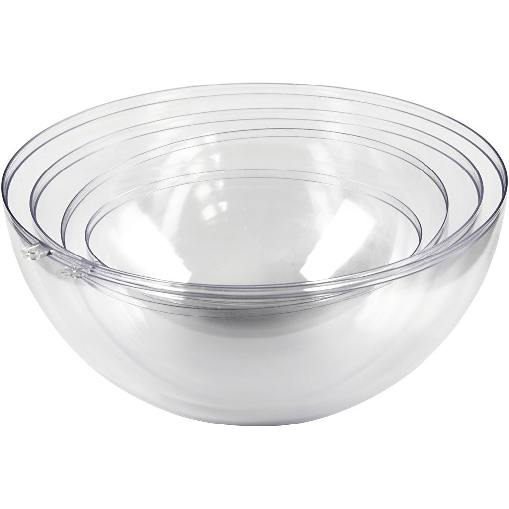Støpeformer av transparent, hard plast til støping av halvkule-formede skåler av betong (og andre støpemasser som ikke utvider seg under hærding).