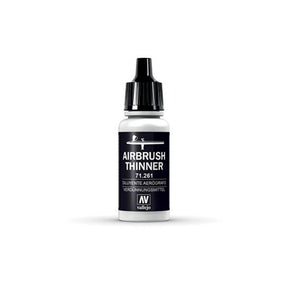 Airbrush Thinner brukes for å tynne ut fargene, øke fluiditeten og forsinke tørketiden. Den endrer ikke fargenes egenskaper. Vi anbefaler å tilsette noen dråper Thinner til fargene under airbrushing.