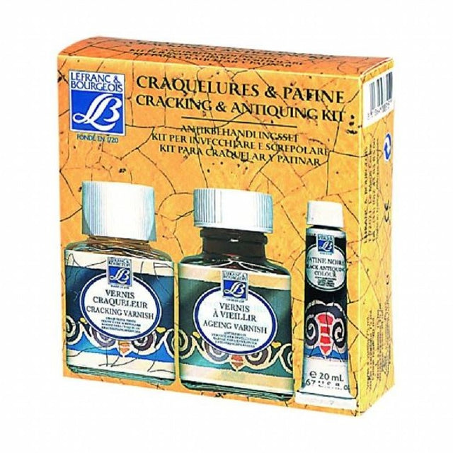 Settet inneholder: Patineringsferniss 75 ml, Krakeleringsferniss 75 ml og Svart Patina 20 ml.