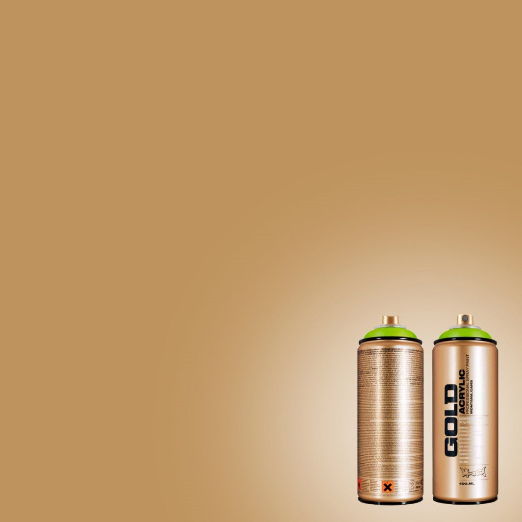 Montana Gold er en matt akrylspray med meget god dekkevne. Ideell til bilder, men også god til maling av gjenstander. Vannfast og lysekte. CFC fri og blyfri. Påse at det er god ventilasjon og bruk vernutstyr som maske og hansker.