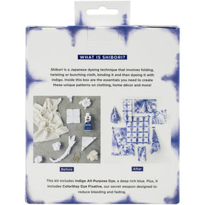 Dette er det nye Shibori Tie Dye-kittet til Rit Dye. Tilsett kun vann.