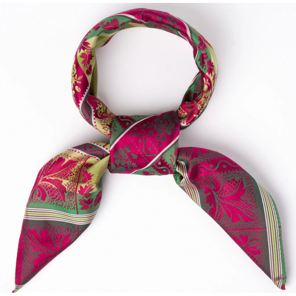 Silkeskjerf fra Tyrihans er det perfekte tilbehøret til både bunader, festdrakter og hverdagsantrekk. Dette skjerfet er produsert av kun de beste silkefibrene og har en størrelse på 75x75cm.