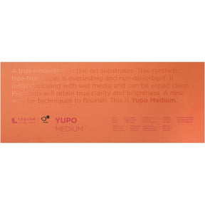 Yupo paper is a unique alternative to traditional watercolor papers. It's an incredibly durable, stain-resistant, non-absorbent synthetic paper that holds ink and watercolor with razor sharp precision. This extraordinary surface also resists tearing and buckling and it remains perfectly flat. Yupo's ultra-white color and super smooth finish makes all the colors of the rainbow sing when applied to this revolutionary surface. Colors are brilliant and they lift off completely. This synthetic paper made of 100% polypropylene offers a unique alternative to traditional art papers. As a watercolor paper, it has the advantage of being non-absorbent, so colors lie on top of its surface producing brilliant vibrant effects. Yupo requires no soaking, stretching or taping flat.