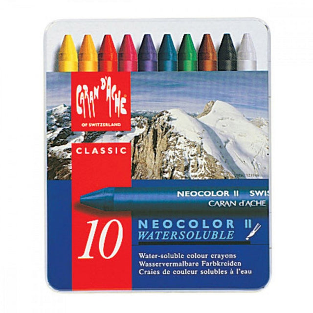 Caran d'Ache Neocolor II er et sett med 10 høykvalitets vannløselige fargestifter som gir deg muligheten til å skape enestående kunstverk med både intense og delikate farger. Disse fargestiftene er ideelle for både amatører og profesjonelle kunstnere og kan brukes på en rekke overflater, inkludert papir, papp og tekstil.