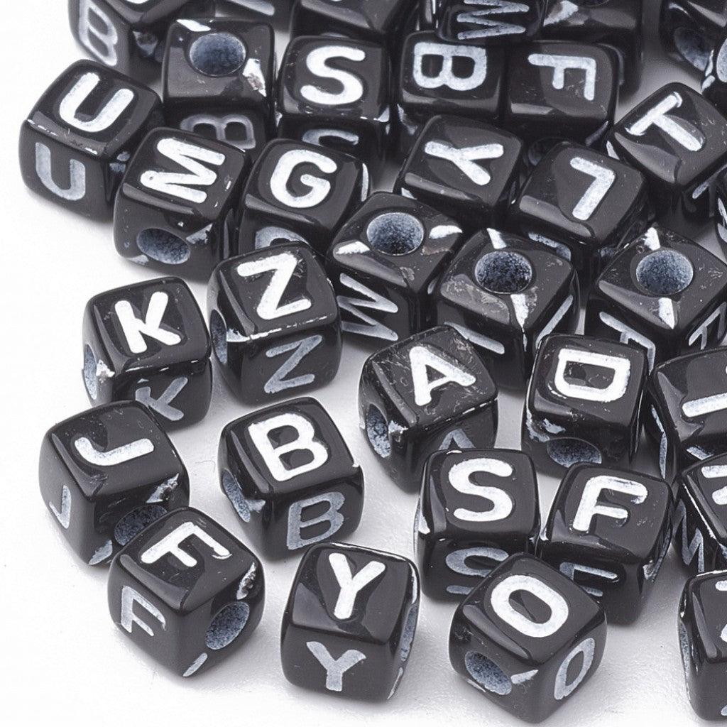 Alfabetperler Kube 5x5mm - Hvitt på Sort