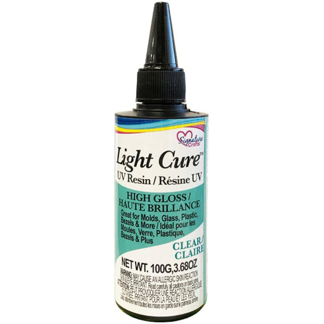 Resin Craft by Me UV resin is ready to use and crystal clear cures to a hard, glossy surface in minutes. Use it to fill molds and bezels, layer with inclusions for a custom creation made by you. This 3.5x2.2x7.5 inch package contains 100ml bottle of UV resin. CAUTION when handling, cured resin may be HOT! CAUTION: keep out of reach of children. Use resin in a well ventilated area. Avoid contact with skin. May be harmful if swallowed. May cause eye irritation. Not edible. Store in a cool, dry place.