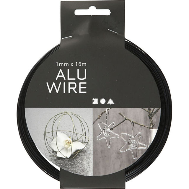 Aluminiumstråd, Rund - 1mm x 16m, Svart