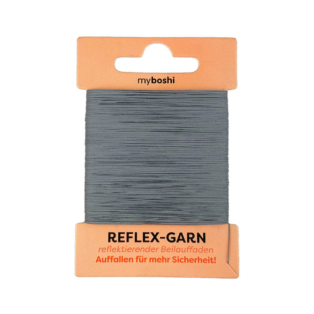 Myboshi Reflekstråd er en praktisk tilleggstråd som kan strikkes eller hekles sammen med annet garn for å gjøre plagg og tilbehør mer synlige i mørket. Tråden er tynn og fleksibel, og påvirker ikke garnets egenskaper eller maskebilde i vesentlig grad.