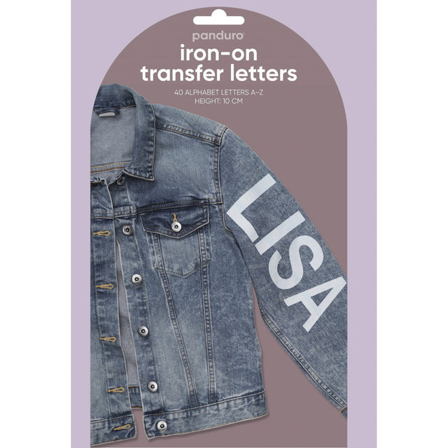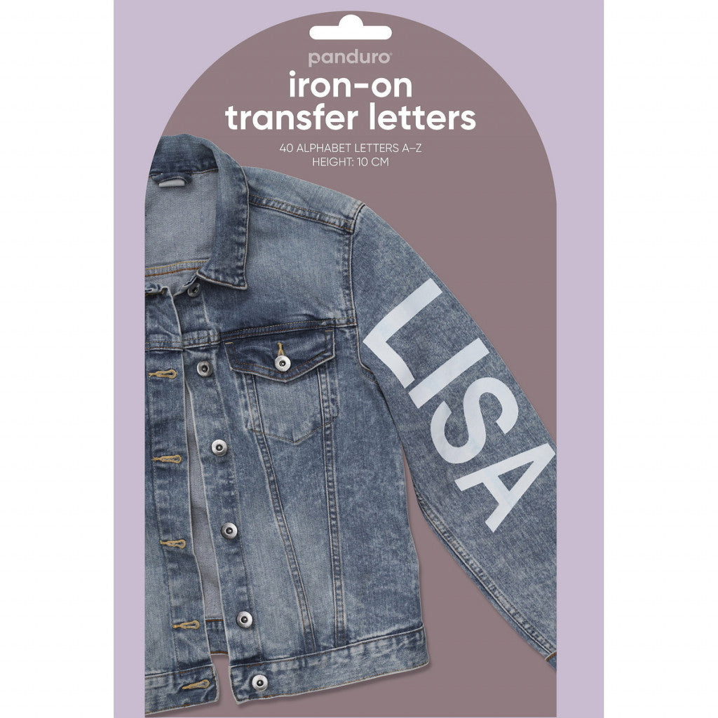 Iron on Transfers er en enkel og morsom måte å stryke fast bokstaver på klær, hjeminnredning og ulike typer tekstiler på. Alt du trenger er en saks, et strykejern og en god idé! Pakken inneholder et stort ark med til sammen 40 stk. 10 cm høye bokstaver fra A–Z og litt flere «I»-er, som er enkle å klippe / skjære til hvis du trenger en ekstra «T» eller «F». Det er ikke så lett å forutsi hvilke bokstaver nettopp du kan trenge, så litt oppfinnsomhet kan i noen tilfeller komme godt med. Vi anbefaler imidlertid ikke at du legger det hvite trykket i doble lag, siden det overlappende punktet da blir markant hvitere når det strykes fast.