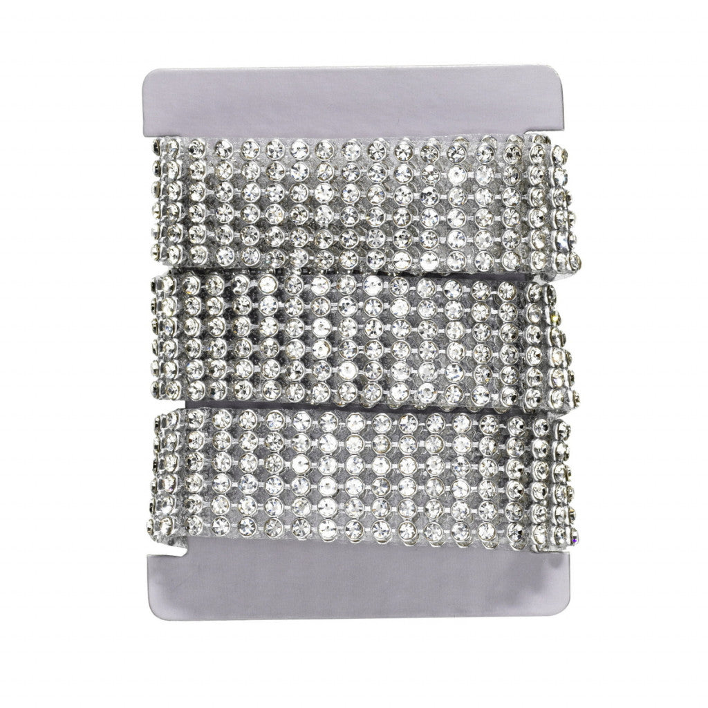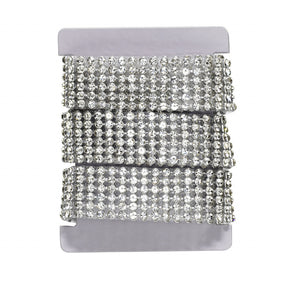 Iron-on strassbånd, 1 meter langt og 2 cm bredt, med en mengde gnistrende strass som lengter etter å blinge til ditt neste prosjekt! Klipp til ønsket lengde og bredde, finn frem strykejernet og still det inn på bomullstemperatur. Plasser objektet som skal utstyres med bling på et strykebrett eller et annet plant underlag, legg strasslengden med limsiden ned og dekk deretter strasset med et litt tykkere stoffstykke, for eksempel et kjøkkenhåndkle. Press strykejernet mot området i 25–30 sekunder og fjern stoffstykket – voilà, du har et vakkert gnistrende stjernedryss! Strassbåndet bør ikke brukes på skinn, PVC og plastmateriale som ikke tåler å strykes. Tåler å vaskes på 40 °C, men objektet må vrenges eller legges i vaskepose.