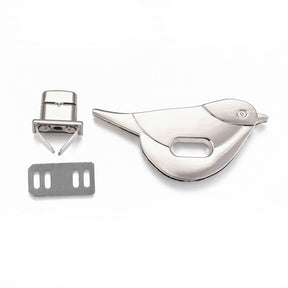 En vakker veskelås i platinafarget metall med dekorativ fugleform – både funksjonell og dekorativ, perfekt for veskeentusiaster som vil gi prosjektene sine et personlig og stilfullt preg.