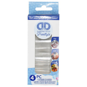 Dette settet består av 4 oppbevaringsbokser, egnet for oppbevaring av Diamond Dotz. Hver sylinder har en kapasitet tilpasset 12 g DOTZ®, og passer godt til sortering og lagring av farger under arbeid eller mellom prosjekter.