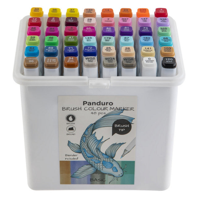 Panduro colour marker brush sets er vår nye og komplette serie alkoholbaserte tusjpenner med penselspiss, som vi er veldig stolte av! Alle tusjpennene har dobbel spiss og uansett hva du ønsker å tegne, vil du elske å arbeide med disse pennene. Gode å holde i, spisser av høy kvalitet, sensasjonelle farger som både er enkle å sjattere og fungerer godt sammen – alt dette med et stort utvalg av farger til en helt uslåelig pris! Panduro colour markers inneholder ingen animalske ingredienser og er ikke testet på dyr.