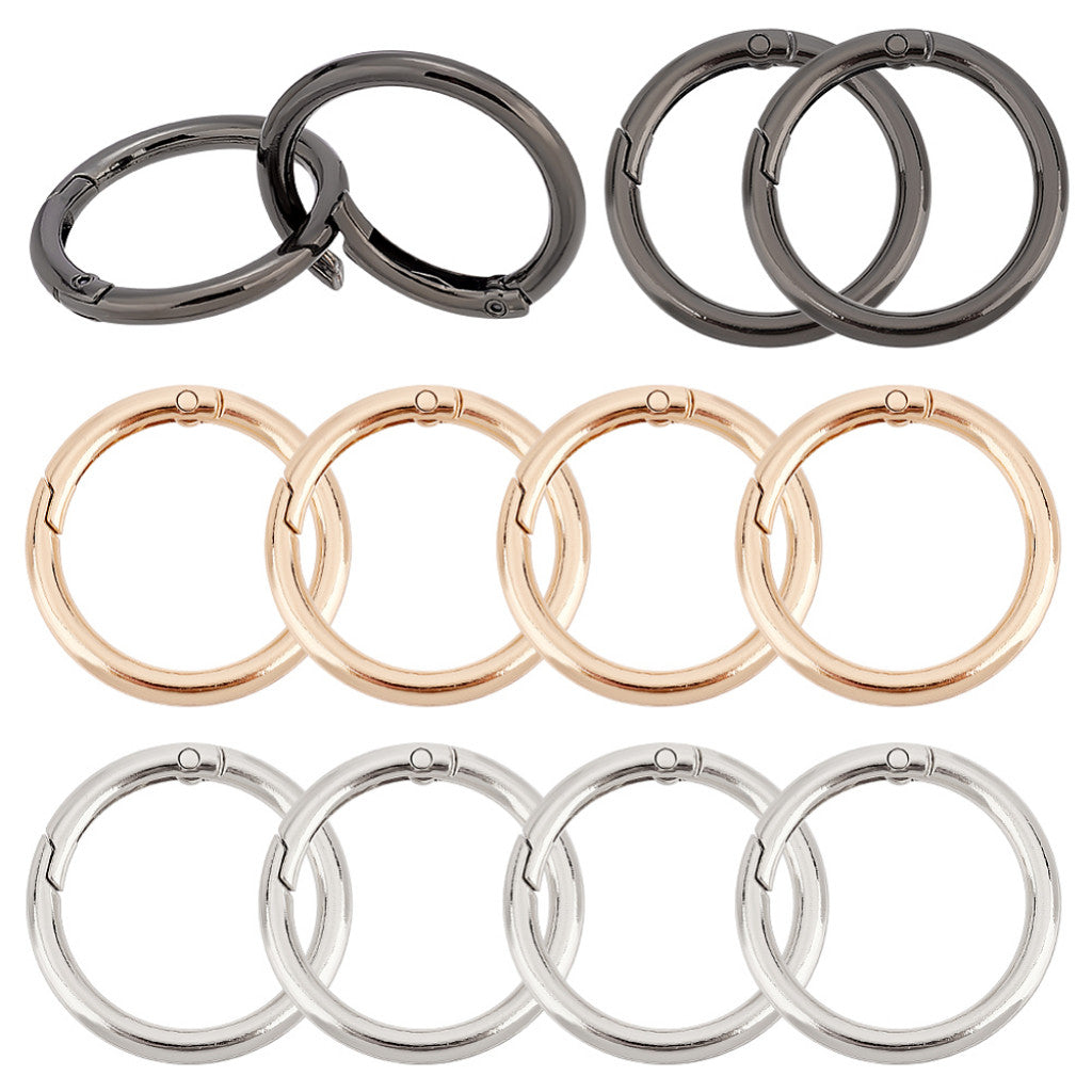 Disse solide og allsidige veskeringene med åpning er perfekte til DIY-prosjekter som vesker, nøkkelringer, hundebånd, treningsstrikker og tilbehør. Den store innvendige diameteren på 3 cm gjør det enkelt å feste flere elementer samtidig – som stropper, remmer eller anheng. Ringen åpnes og lukkes enkelt og glir smidig tilbake på plass uten å sette seg fast.