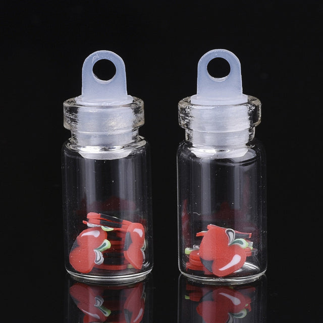 - Størrelse og allsidighet: Dette flaskeanhengen leveres med små Polymer Confetti-dekorasjoner i en rekke former og farger. Flasken er 27.5mm lang med en diameter på 11mm og en 3mm hull for enkelt å kunne henges på et smykke eller en annen dekorasjon.