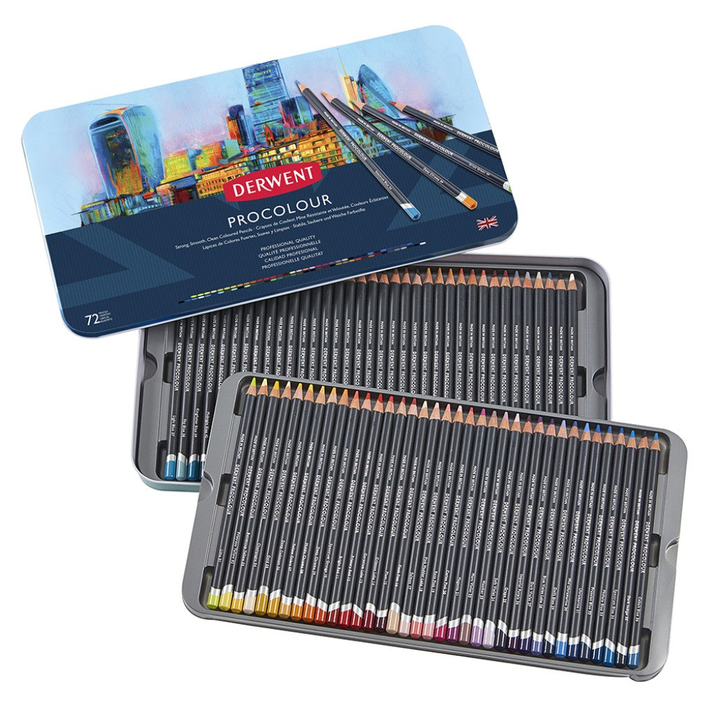 Procolour fra Derwent er den perfekte kombinasjonen av sterk kjerne og glatt fargelegging, med en tekstur som dekker og glir godt på papiret, uten å gi en voksaktig overflate. Fargeblyantene er rikt pigmenterte og gir minimalt med fargestøv for et rent arbeid.
