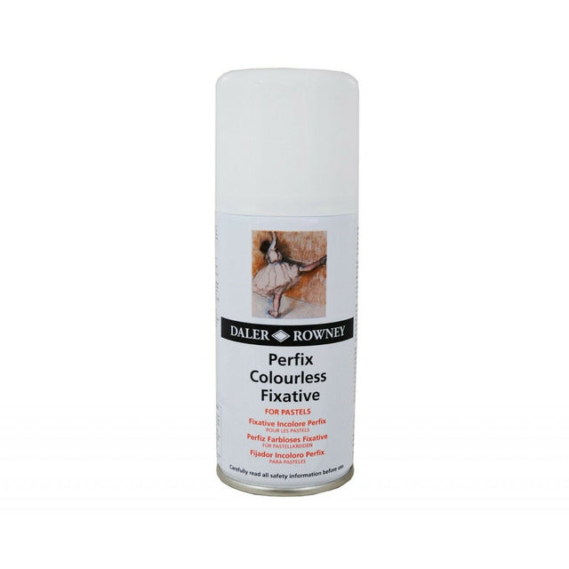 Daler-Rowney Perfix Colourless Fixative is an excellent quality fixative spray that fixes charcoal and pastels. It sprays evenly with a minimal effect on tonal values and is easy to use. Lay your drawing flat and holding the can about 30cm away, spray back and forth across the drawing ensuring even coverage over the surface.