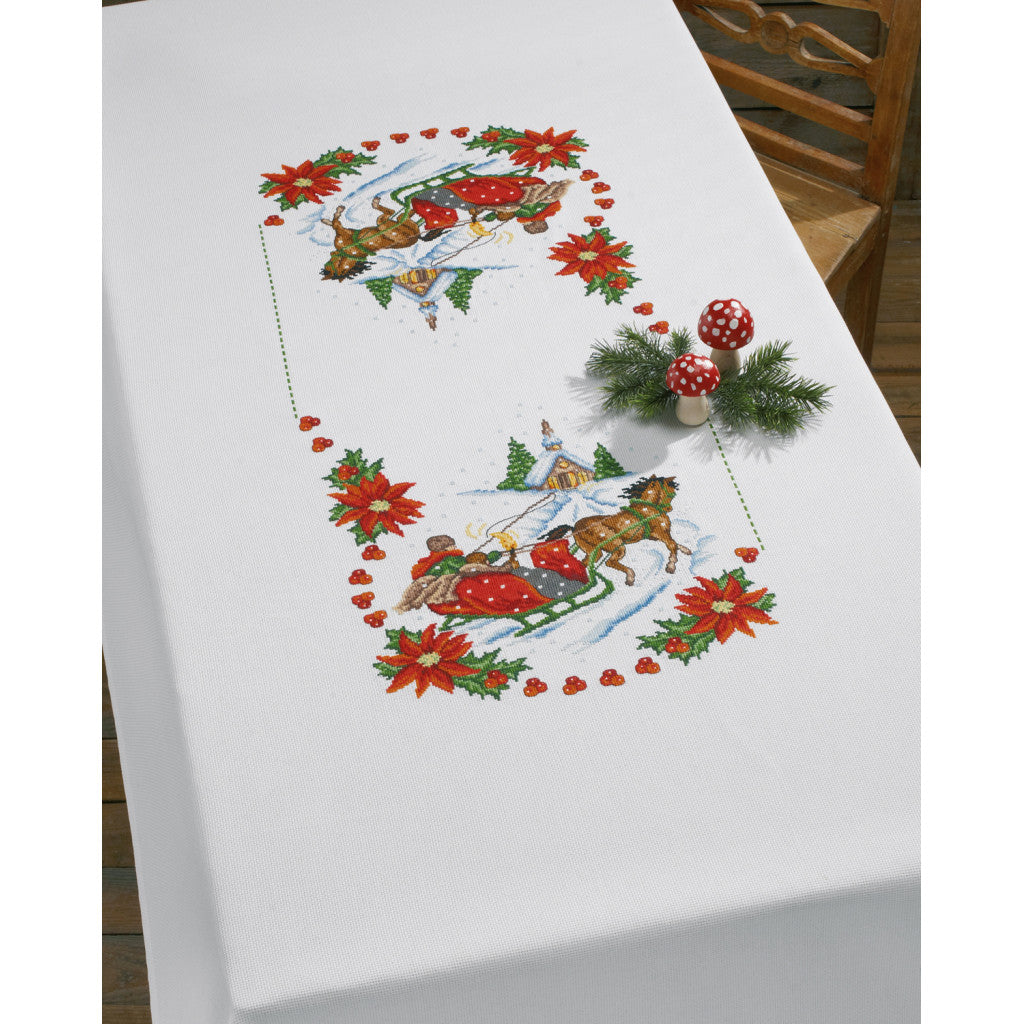Korsstingbroderi Duk 140x220cm - Kirke, Kane & Stjerne