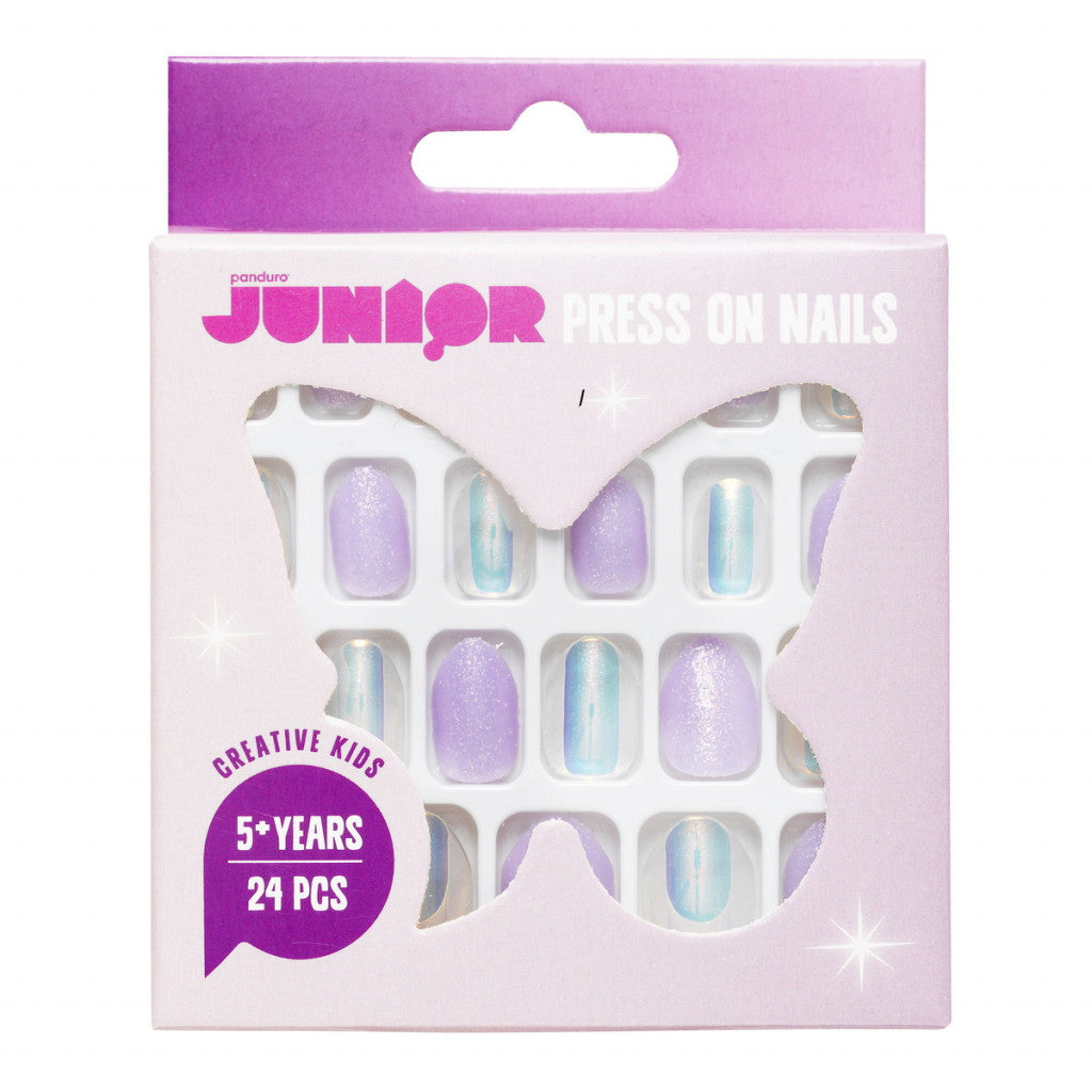 Press On Nails – morsomme, «blingete» og fremfor alt iriserende / fargeskiftende selvklebende løsnegler. Pakken inneholder 24 løsnegler, og størrelsene er beregnet for barn. Tørker neglene, kan de settes på igjen med et godkjent hudlim – se artikkelnummer 800898. Fra 5 år.